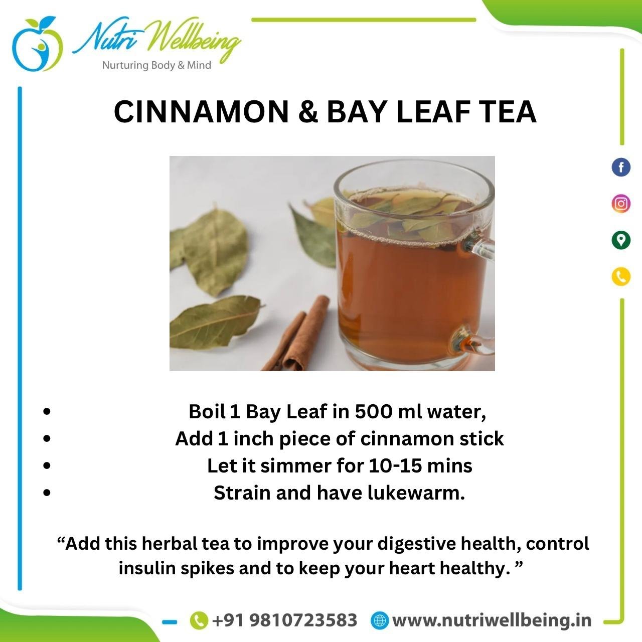 • Simmering: For a more robust flavor, simmer the cinnamon stick and bay leaves in water for 15-20 minutes. Strain the water and discard the spices before drinking.